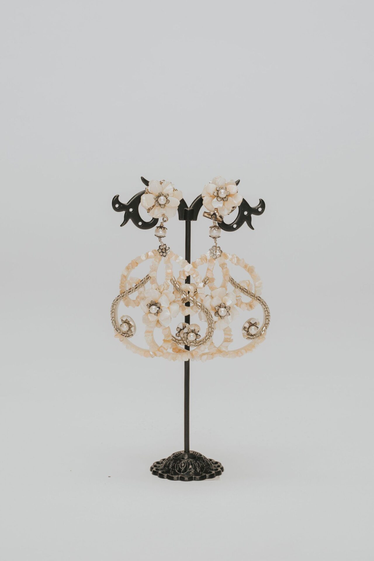 Pendientes dorados con perlas y flores