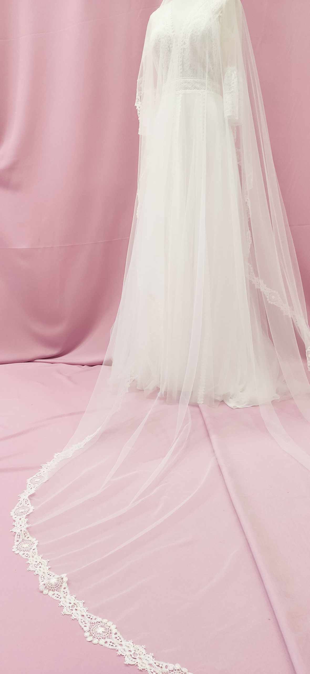 Velo mórbido con guipur romboidal vintage, en blanco roto. Medidas: 2×3